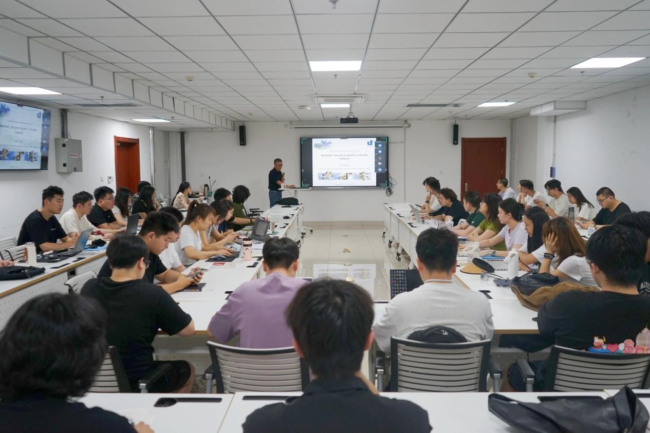 活动后半程,海内外专家学者持续带来精彩分享。7月9日,丹麦技术大学欧海燕副教授以“Photonic application of SiC”为题,深入探讨了碳化硅在光子学领域的应用,从基础特性到器件设计,展现了碳化硅材料在光电子技术中的巨大潜力。7月10日,德国锡根大学姜辛教授以“Discovery of the Giant Magnetoresistance (GMR) Effect - A Classic Case of Thin Film Technology in Basic Scientific Research”和“Diamond - not just as jewelry a valuable material”为主题,通过巨磁电阻效应这一重大科学发现,揭示了表面与薄膜技术在基础科研中的关键作用;同时打破大众对金刚石的传统认知,系统介绍了金刚石作为功能材料在半导体领域的独特价值。下午,欧海燕副教授再次登台,聚焦“Nanophotonic application of SiC”,进一步拓展了碳化硅在纳米光子学领域的前沿应用,为师生们带来了跨学科的学术启发。