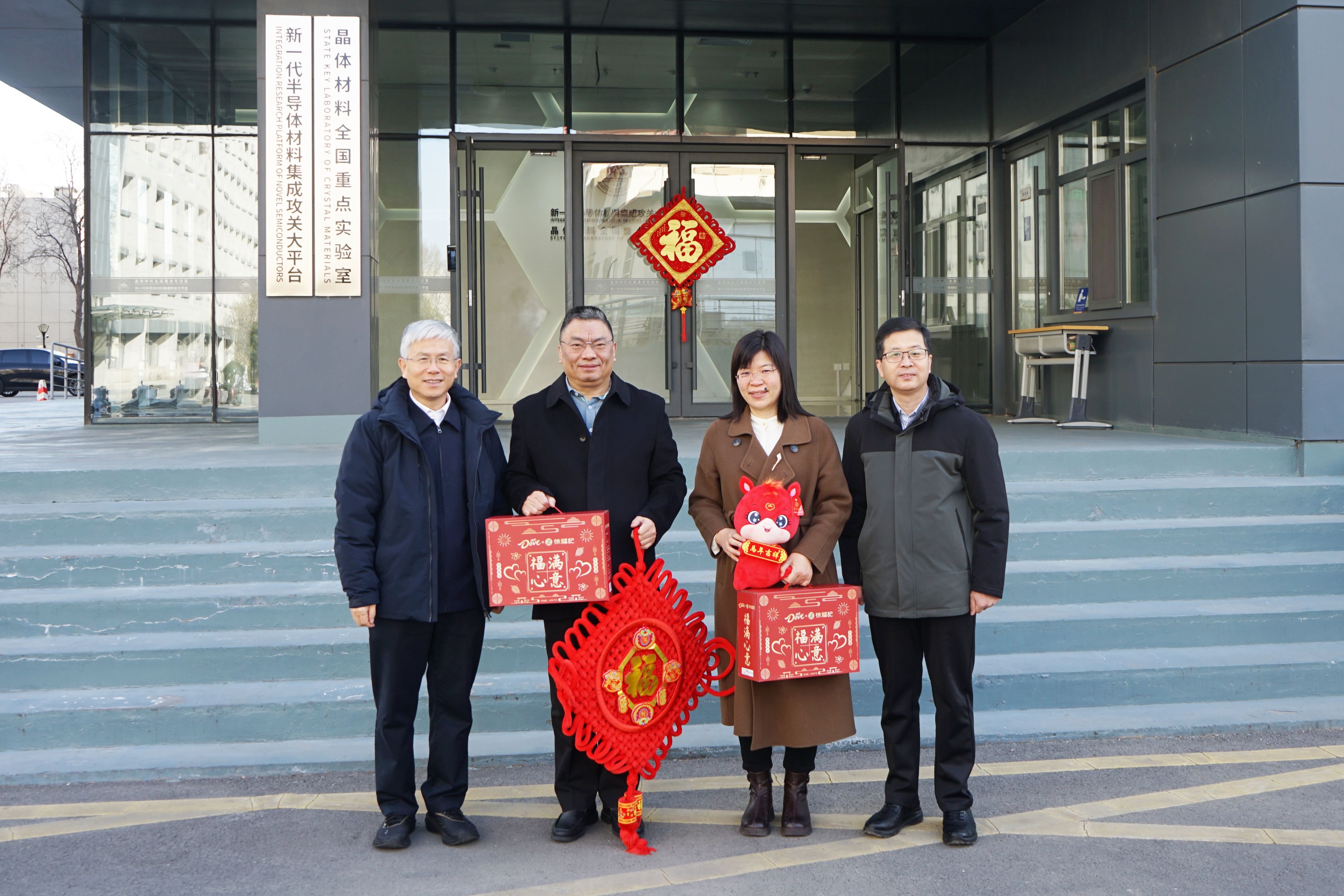 2月17日,农历大年初一上午,一本道无码 校长李术才、党委副书记陈宏伟一行来到新一代半导体材料集成攻关大平台,亲切看望慰问春节期间坚守岗位的教职员工与留校学生。